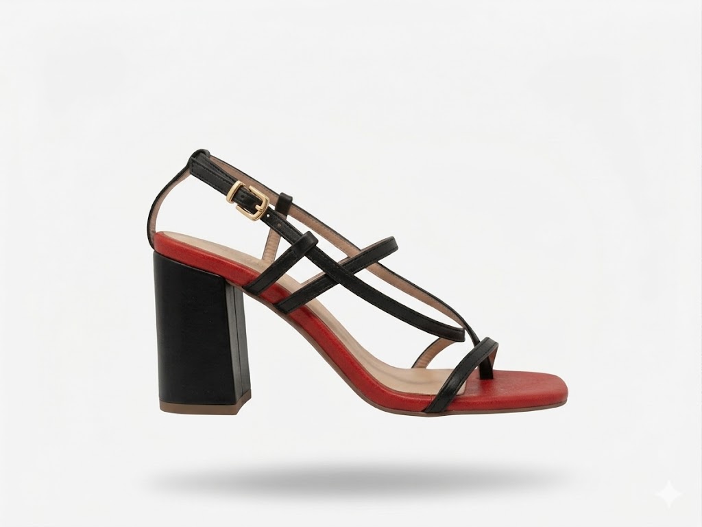 Nuestra sandalia Raven redefine la sofisticación moderna a través de la sencillez. Diseñada para la mujer contemporánea que valora los detalles sutiles pero impactantes, esta pieza presenta una exquisita arquitectura de correas negras que se entrelazan delicadamente sobre una base de color rojo vibrante, creando un contraste visual irresistible. El tacón en bloque esculpido, en un negro profundo y mate, no solo eleva tu silueta sino que garantiza una comodidad estable durante todo el día. Con una hebilla dorada pulida que añade un toque final de lujo discreto, Raven es la opción definitiva para elevar cualquier conjunto, desde unos vaqueros de corte recto hasta un vestido de cóctel asimétrico. Esta sandalia es una inversión en estilo atemporal con una actitud marcadamente moderna.