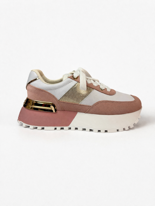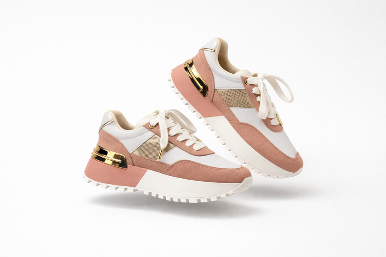 La plataforma con acento metálico eleva el diseño, mientras su construcción cómoda la convierte en una pieza ideal para el día a día con un toque refinado.