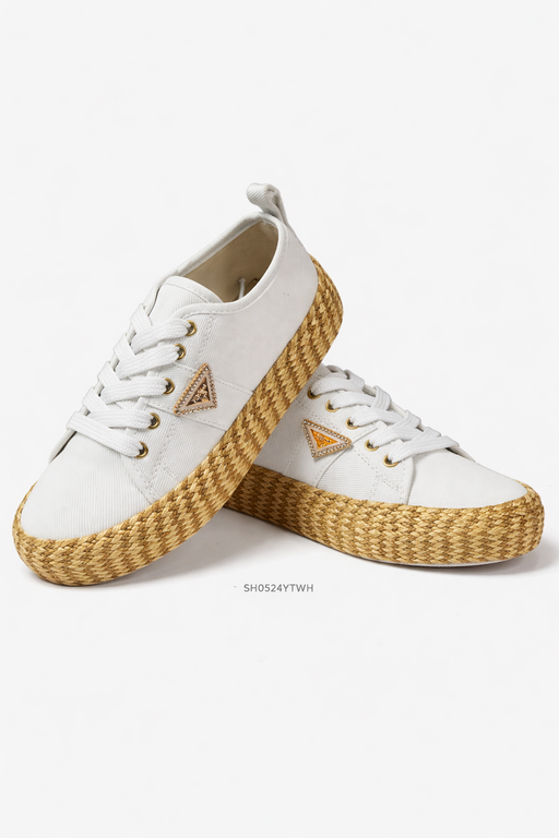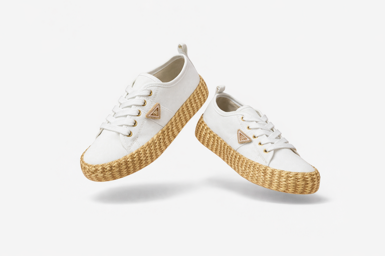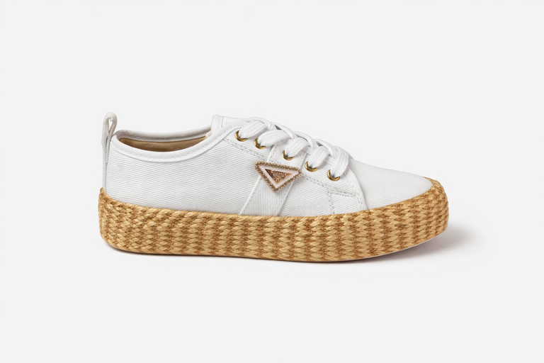 Este tenis plataforma en tono blanco se convierte en una pieza esencial gracias a su estética limpia y versátil, complementada con una suela forrada en yute que aporta textura natural y un aire mediterráneo moderno.