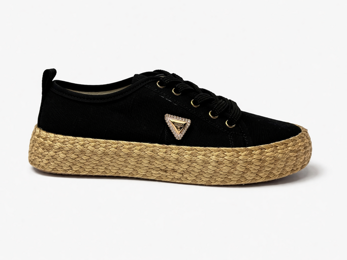 Este diseño combina la versatilidad del negro con la textura natural del yute, creando un equilibrio perfecto entre lo urbano y lo artesanal.